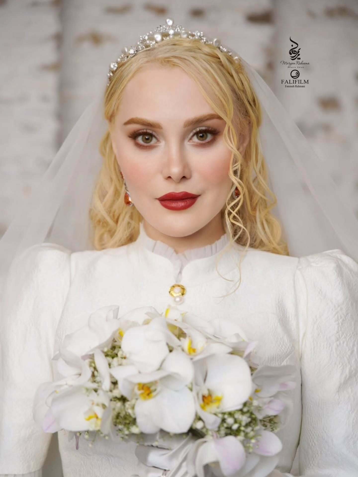 نیمتاج ظریف با کریستال و مروارید و توری با حجم متعادل، لباس و آرایش کلاسیک عروس را قاب گرفته و جلوه خاصی به تصاویر مراسم داده بود. این انتخاب باعث شد مراسم یکی از متفاوتترین و بهیادماندنیترین عروسیهای هنرمندان ایرانی شود.