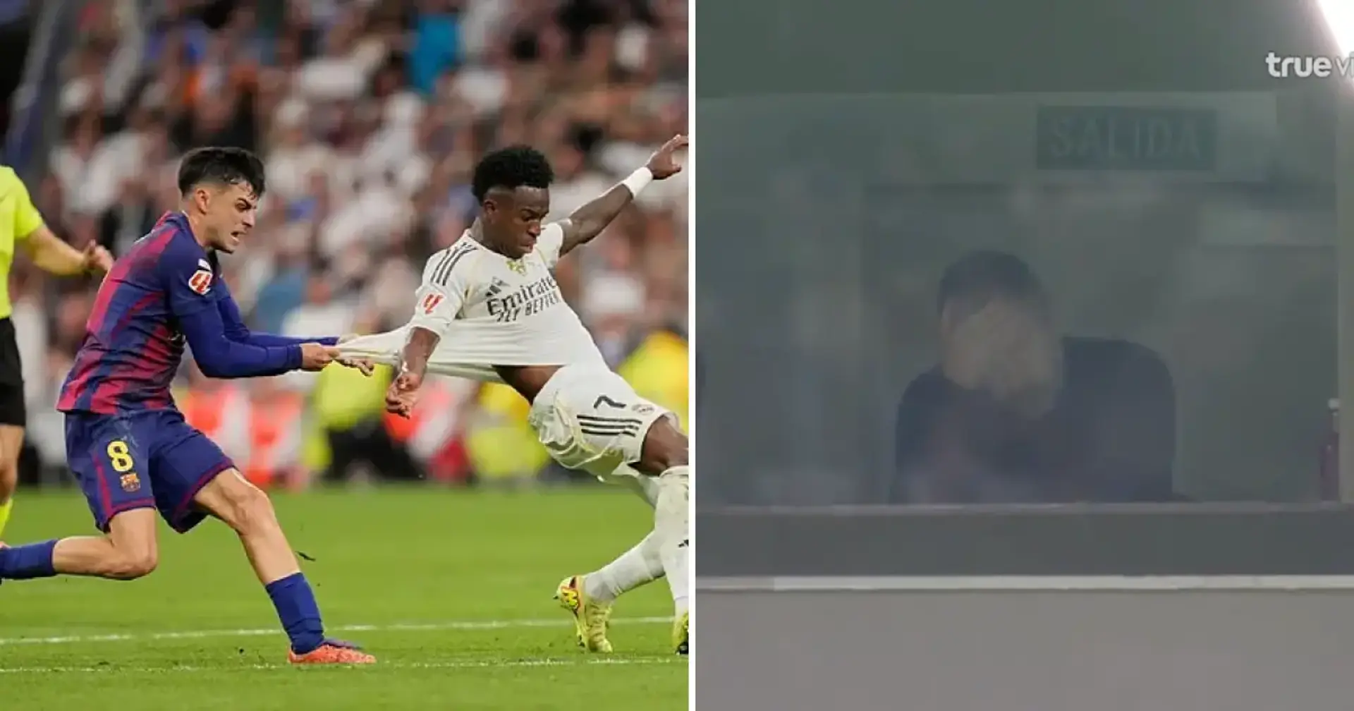 دو دقیقه بعد، وینیسیوس جونیور فکر کرد که پس از سرنگونی توسط یامال در داخل محوطه جریمه، صاحب یک پنالتی شده است. اما پس از آن، داور سوتو گرادو به مانیتور فراخوانده شد و بررسی طولانی انجام شد. وقتی به نظر میرسید که او تصمیم گرفته است که یامال با نوک پا به توپ برخورد کرده و توسط وینیسیوس جونیور لگد زده شده است، شعارهای آشنای «نگریرا، نگریرا!» و «فساد در فدراسیون» در برنابئو شنیده میشد.